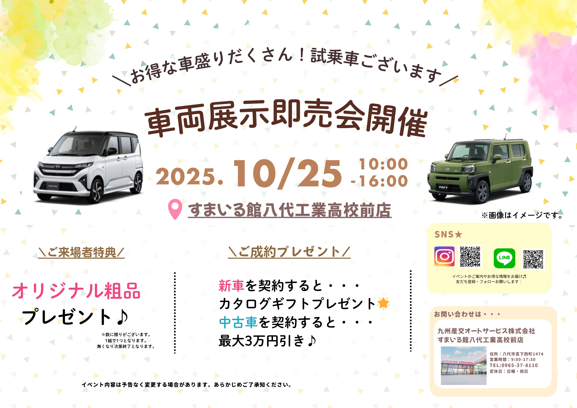 八代工業高校前店にて「車両展示即売会」を開催いたします🌟